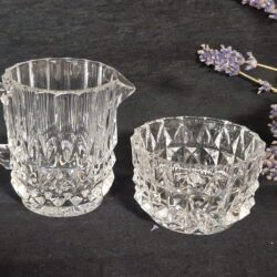 Dit is een vintage roomstel van 24% loodkristal, vervaardigd door Anna Hütte Bleikristall in Duitsland. Anna Hütte was een kristalfabrikant