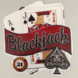 Mooi metalen gestanst bord. Black Jack Lengte:45cm Breed:0,5 cm Hoogte:49 cm Gewicht:0,8 kg