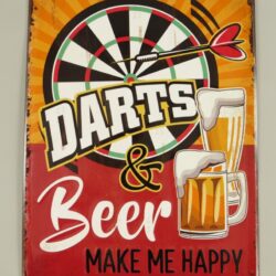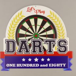 Mooi metalen wandbord Darts Hundred and eighty. Gestanst Artikel nummer.:Ā 332.355 Lengte:40 cm Breedte:0,3 cm Hoogte:36cm Gewicht:0,38 kg