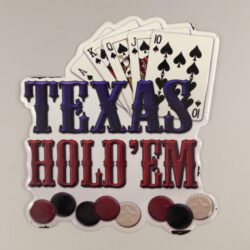 Mooi metalen gestanst bord. Texas Hold’em Lengte:45cm Breed:0,5 cm Hoogte:49 cm Gewicht:0,8 kg