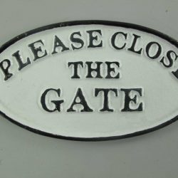 Please close the gate ovaal Bruto gewicht: 0.7 kg Breedte: 9 cm Lengte: 17,5 cm gietijzer