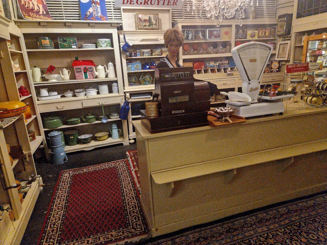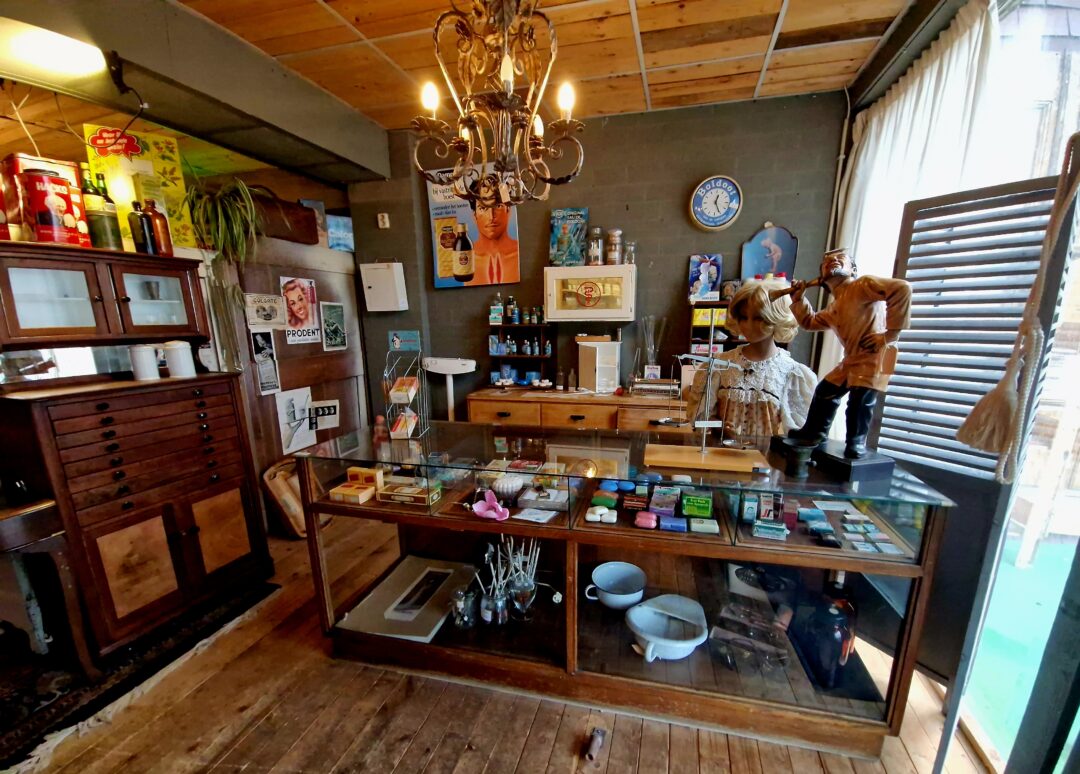 je loopt van ruimte naar ruimte, je waant je in een andere wereld als je van bakkerij naar vintage drogisterij,