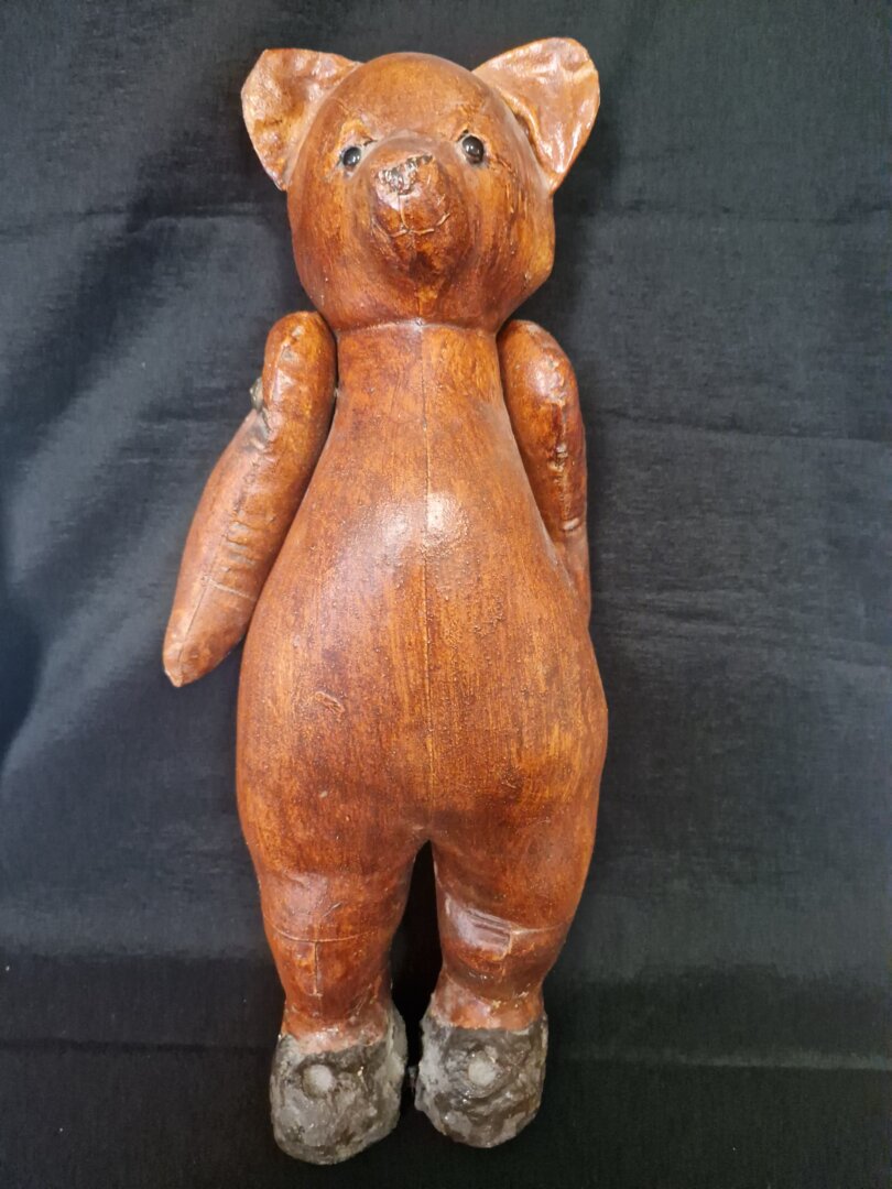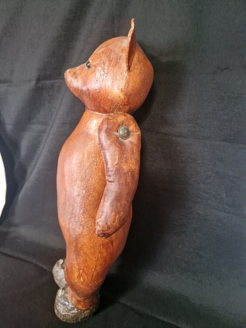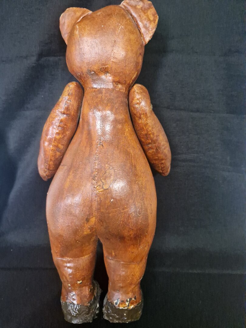 Deze prachtige antieke leren beer straalt warmte, nostalgie en vakmanschap uit. Het rijke, door de jaren heen gevormde leer geeft het stuk een uniek karakter dat je in moderne objecten zelden terugziet. Elke plooi en lichte verkleuring vertelt een verhaal van tijd, gebruik en authenticiteit.