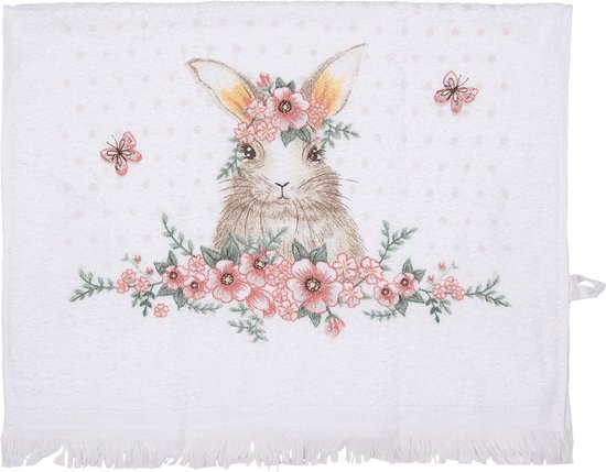 Katoen Gastendoekje/Toilethanddoek van het merk Clayre & Eef. Konijn motief in een landelijke stijl met een romantische uitstraling. xUit de keukentextielserie Country Life Animals. Toilet Handdoek Kleine Handdoek