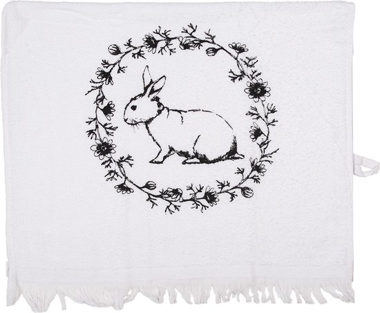 Katoen Gastendoekje/Toilethanddoek van het merk Clayre & Eef. Konijn motief in een landelijke stijl met een romantische uitstraling. xUit de keukentextielserie Country Life Animals. Toilet Handdoek Kleine Handdoek