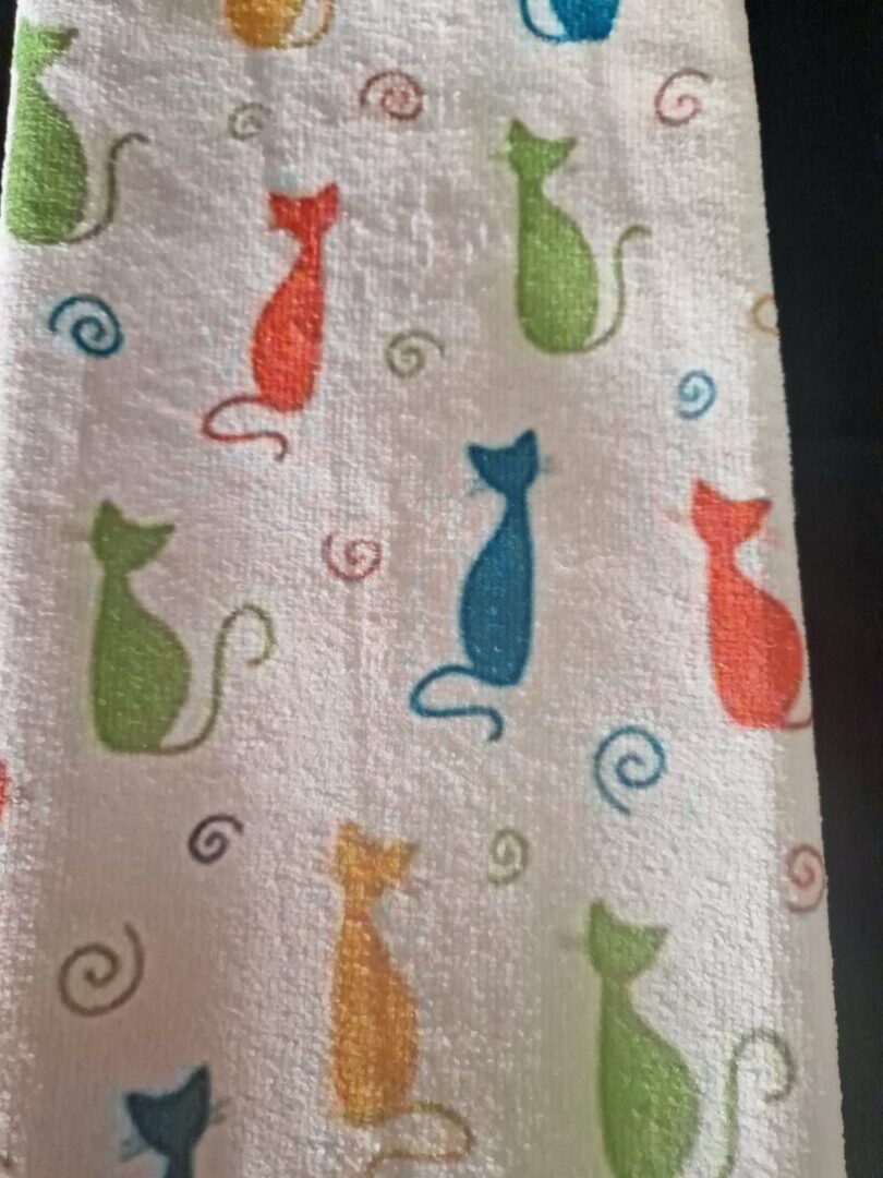 “Vrolijke kattendoekjes die elke badkamer opfleuren.”