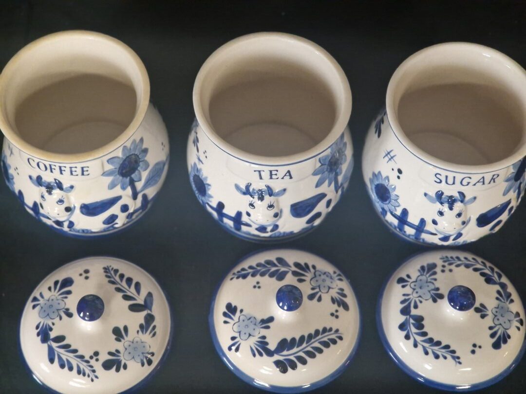 Deze voorraadpotten zijn Delfts blauwe voorraadpotten, vergelijkbaar met items die te vinden zijn in de.