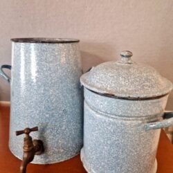 Het set is puntgaaf, alleen het zandbakje heeft een roestvlek aan de onderkant.