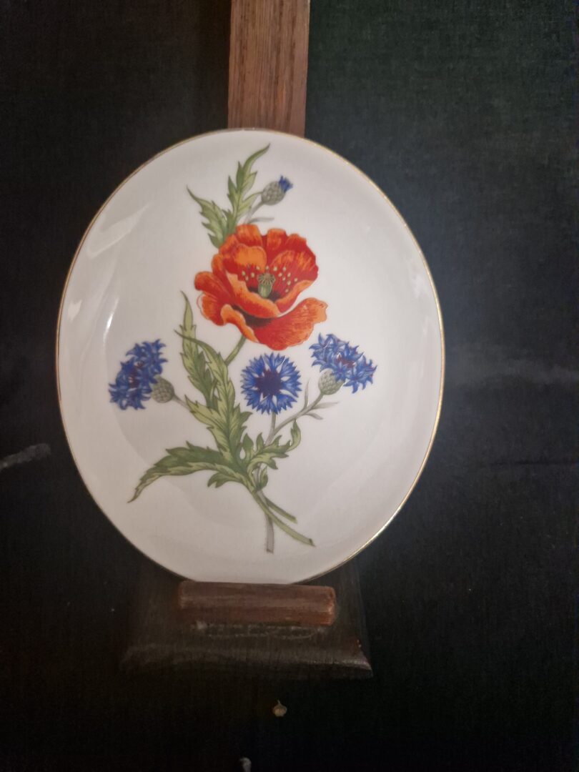Een leuk ovaal schaaltje van Hollohaza met klaprozen en korelbloemen.