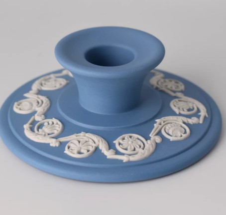 Prachtige Wedgwood kaarsenhouder in de traditionele blauwe kleur. Gemaakt in Engeland in de jaren 1950.