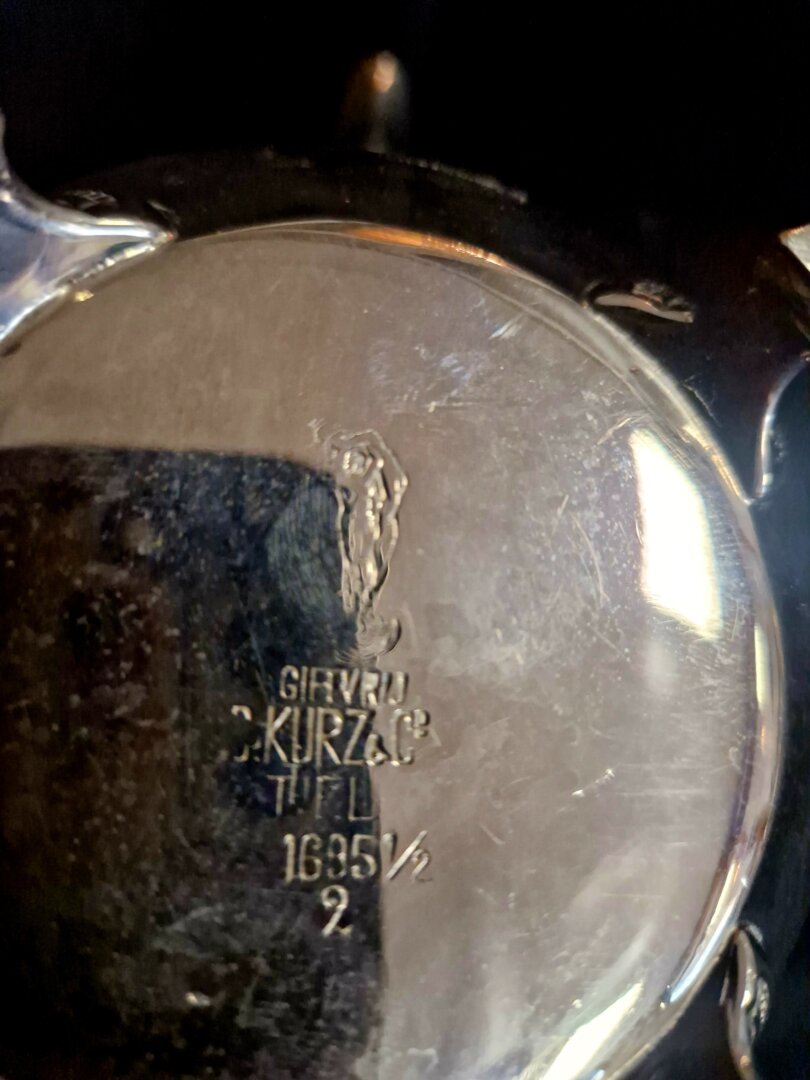 Gemerkt op de bodem: Giftvrij, Kurz & C, Tiel, modelnr. 1695 1/2