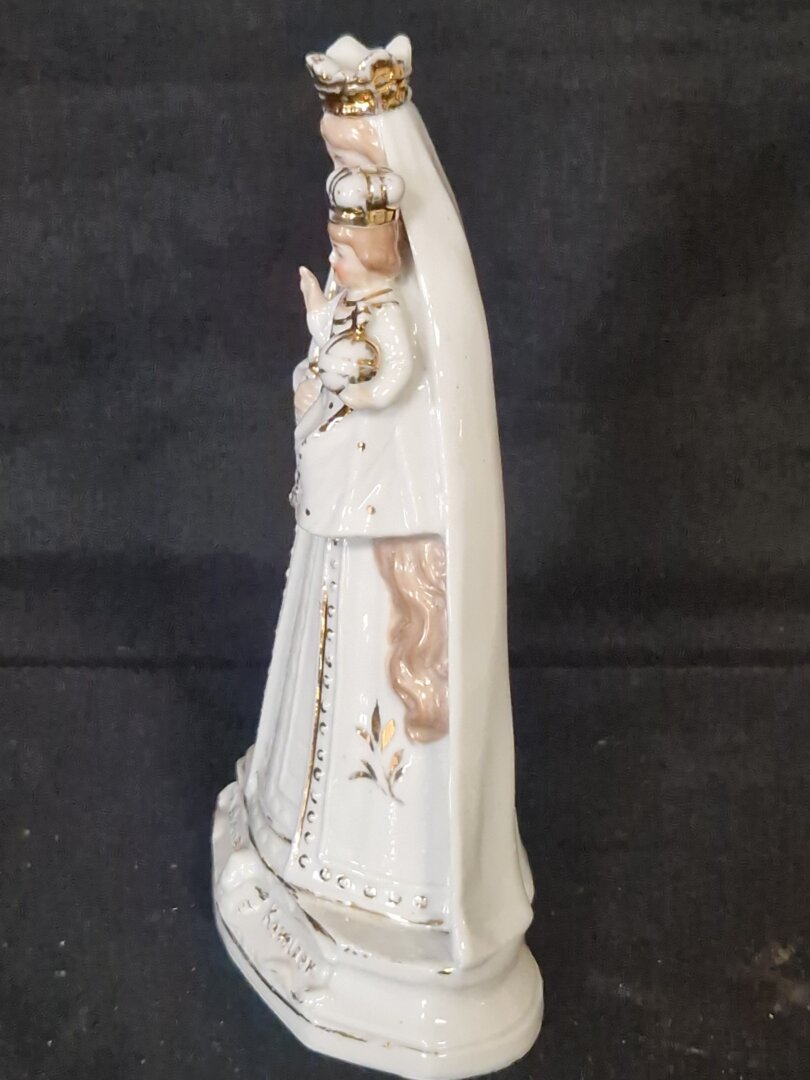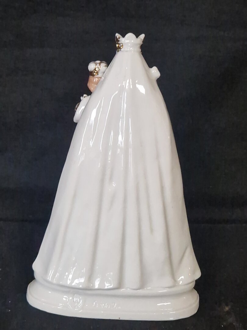 Dit porseleinen beeld is een antieke Maria met kindje Jezus.