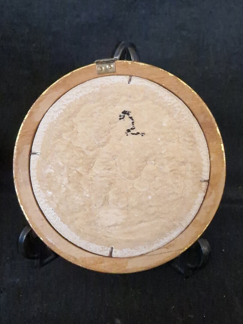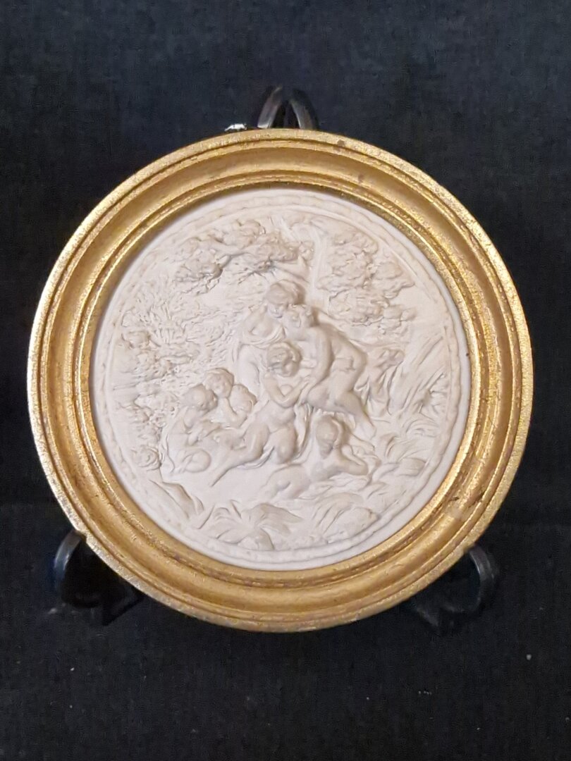 - Onderwerp: Het reliëf toont een tafereel uit het epische gedicht Orlando Furioso, specifiek het moment waarop Angelica en Ruggiero in een bosrijke omgeving zijn afgebeeld.