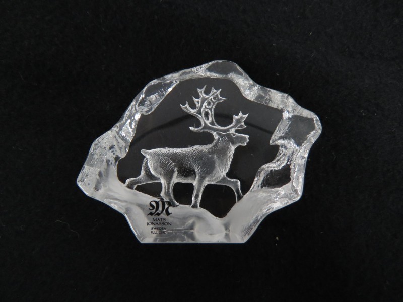 De kristallen sculptuur is handgemaakt waarin prachtig gedetailleerd een rendier zichtbaar is.