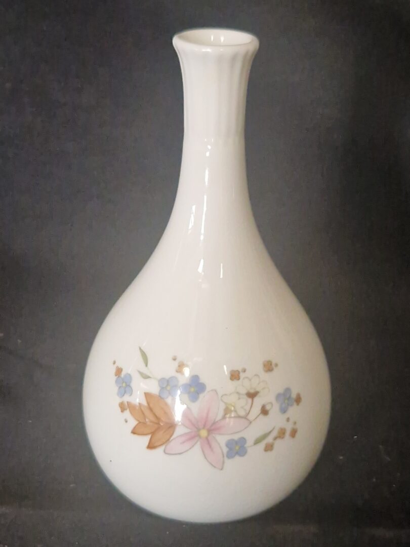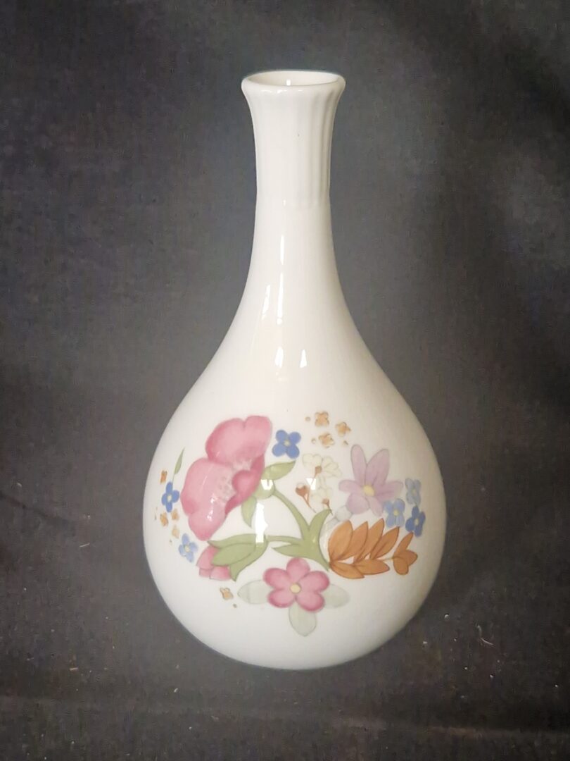 Dit is een Wedgwood Meadow Sweet knopvaas, gemaakt van fijn bone china met een bloemendecor.