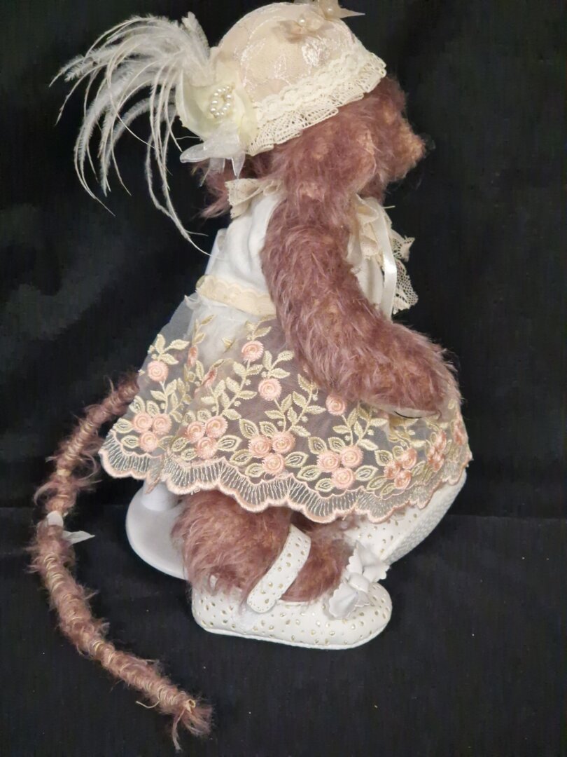 Maak kennis met Mevrouw Rat, een bijzondere handgemaakte knuffel met een eigen stijl en persoonlijkheid. Met haar zachte vacht, lieve oogjes en verfijnde details straalt ze charme en warmte uit.