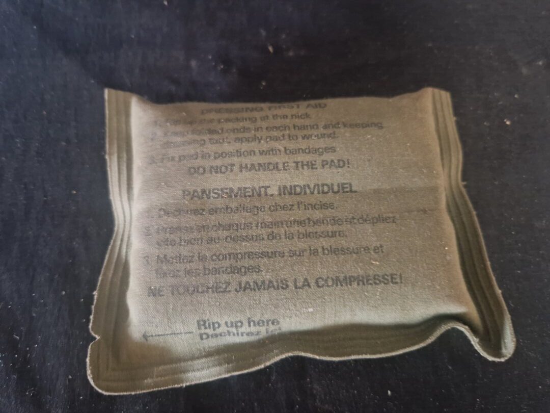 Dit is een militair noodverband (first aid dressing) van het Nederlandse leger, zoals te zien op de verpakking.