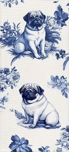 Katoen Gastendoekje/Toilethanddoek met een mopshond