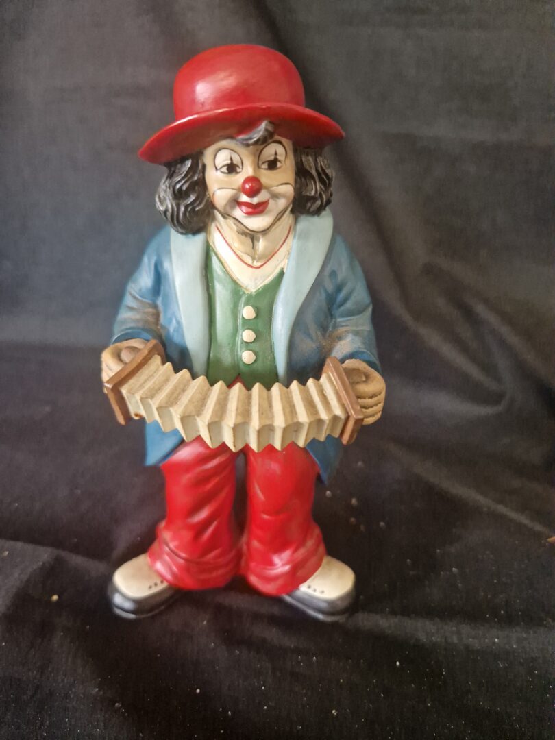 Dit is een Gilde Clown-verzamelobject, model ‘Musikus’, dat een clown met een accordeon voorstelt.