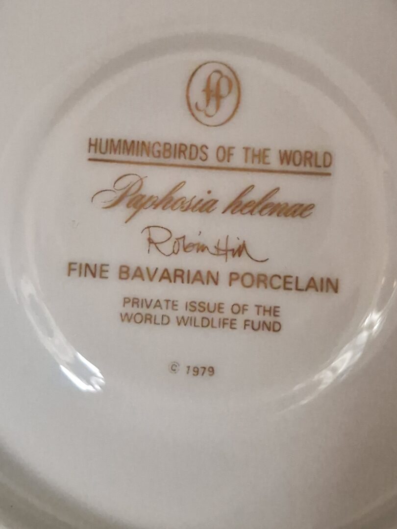 Tags: Franklin Mint, Hummingbirds, kop en schotel, Paphosia Helenae, Wereld natuurfond, Zwartkuifkoketkolibrie