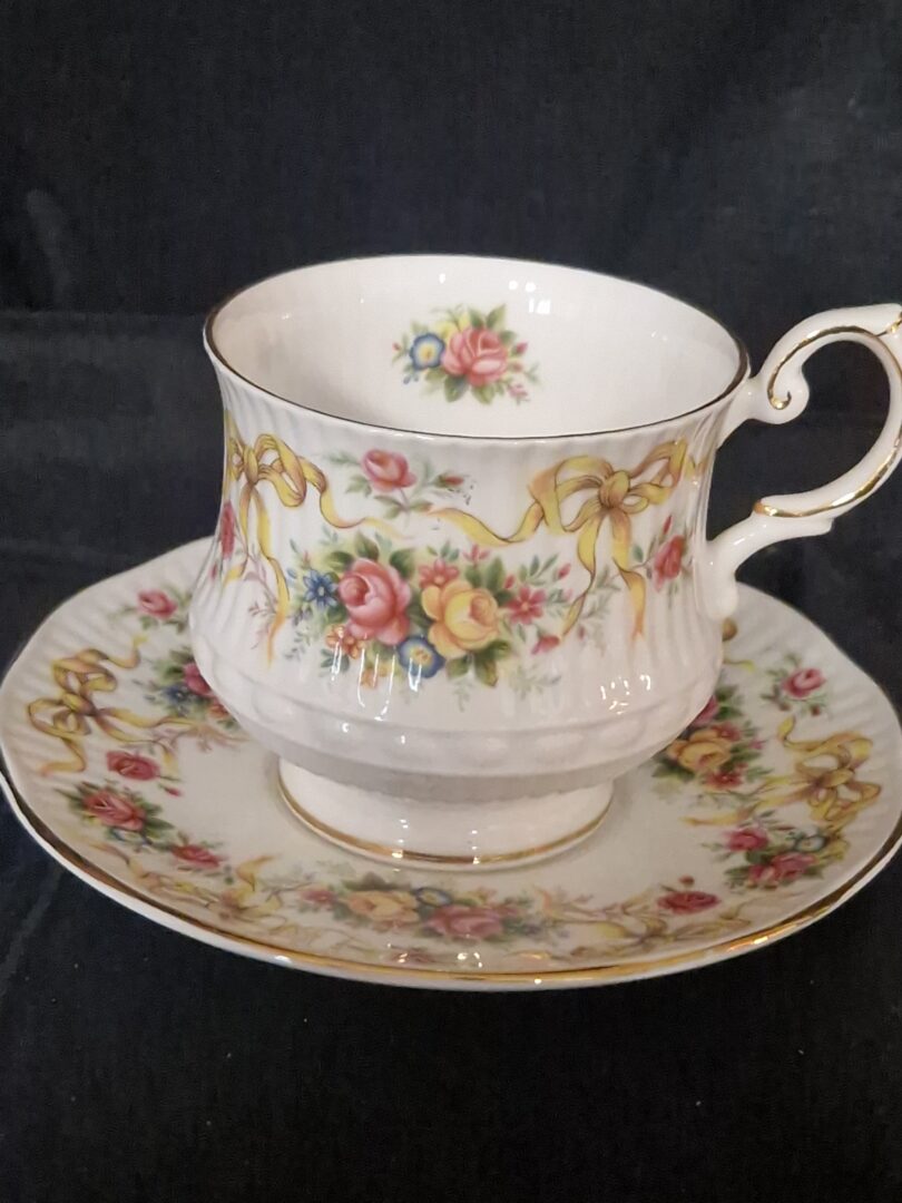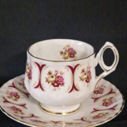 Prachtige kop en schotel van Queens Rosina met een moie bloemenprint