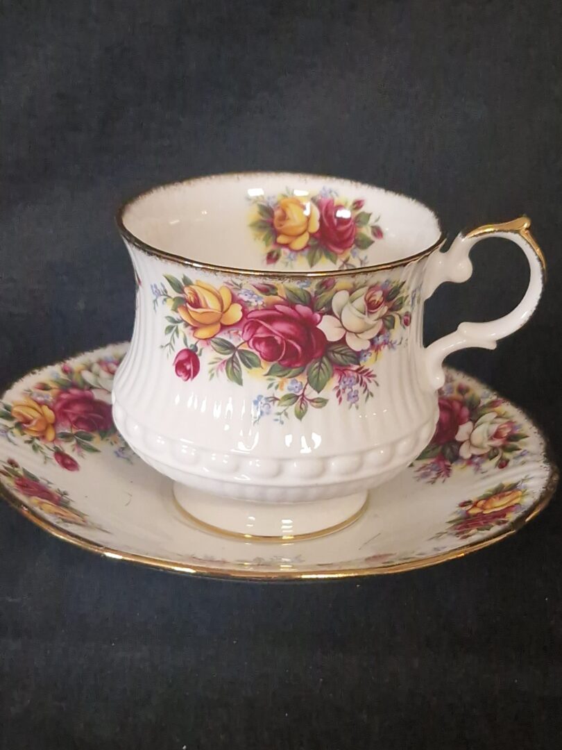 Prachtige Queens Rosina kop en schotel met het geliefde Old Country Rose-motief. Het fijne porselein en het romantische bloemendecor geven dit setje een elegante, tijdloze uitstraling. Perfect voor thee-liefhebbers en verzamelaars van klassiek Engels servies.