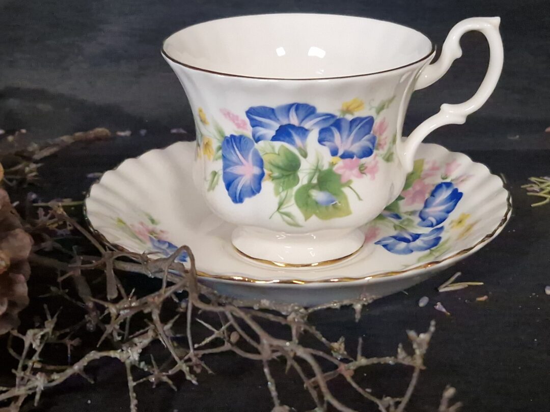 legant en tijdloos: deze Royal Albert Morning Glory herenkop combineert klassieke Engelse fijnporselein met een vrolijk, natuurlijk bloemmotief.