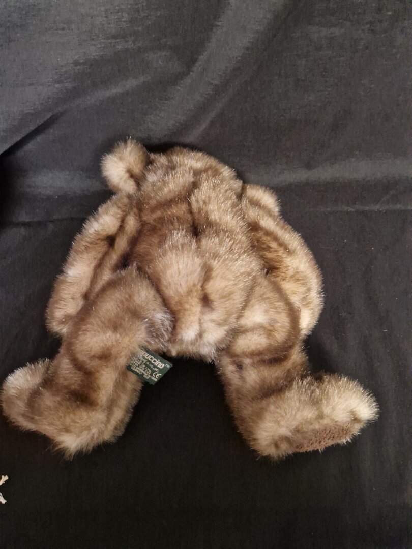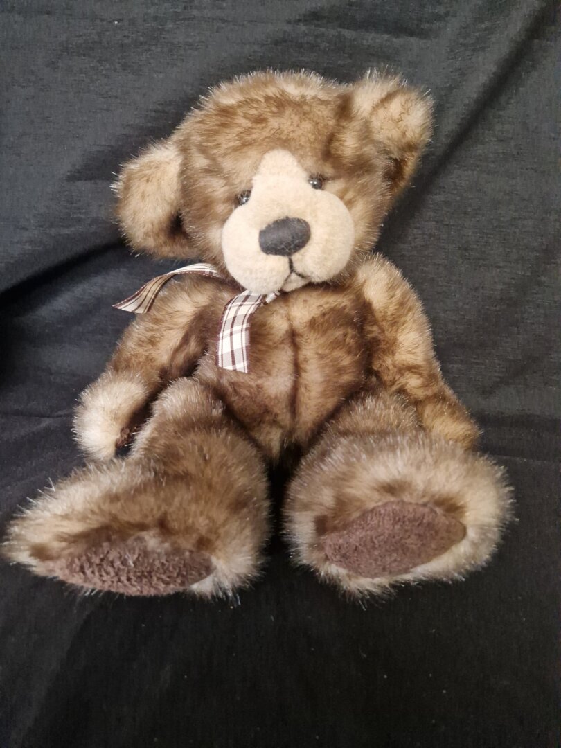 Dit is een charmante teddybeer van Russ Berry Ltd., die begin jaren 90 voor het eerst op de markt kwam. Hij heeft lang bruin, zwart en beige nepbont met donkerbruine pluche poten en een beige en zwarte vilten neus. Mooie donkerbruine ogen maken zijn schattige gezichtje compleet.