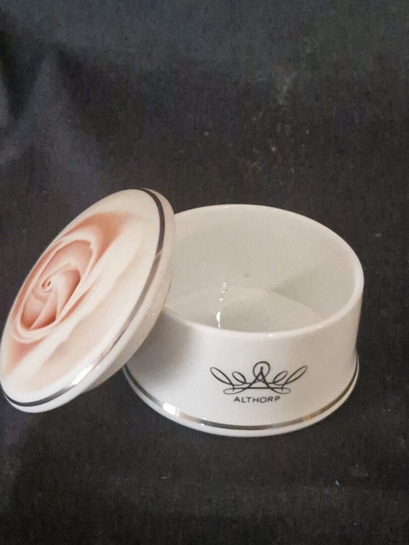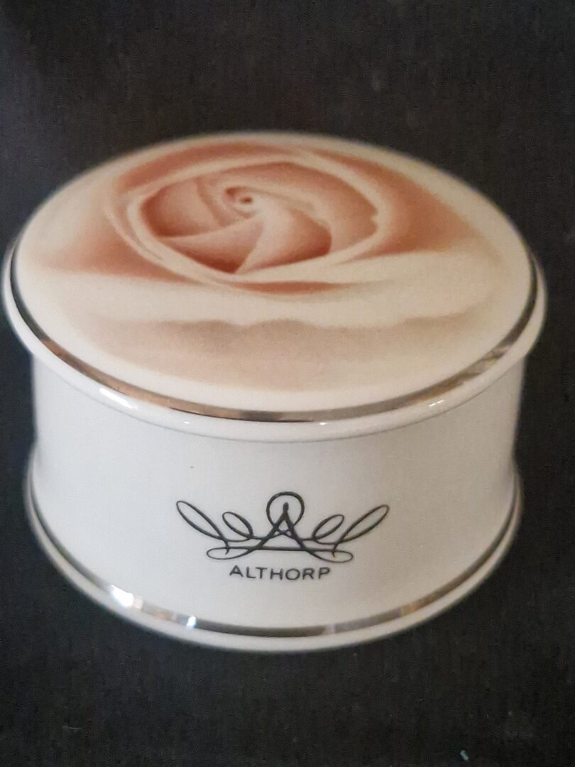 Dit is een Althorp Princess Diana roos snuisterijpotje of trinket box.