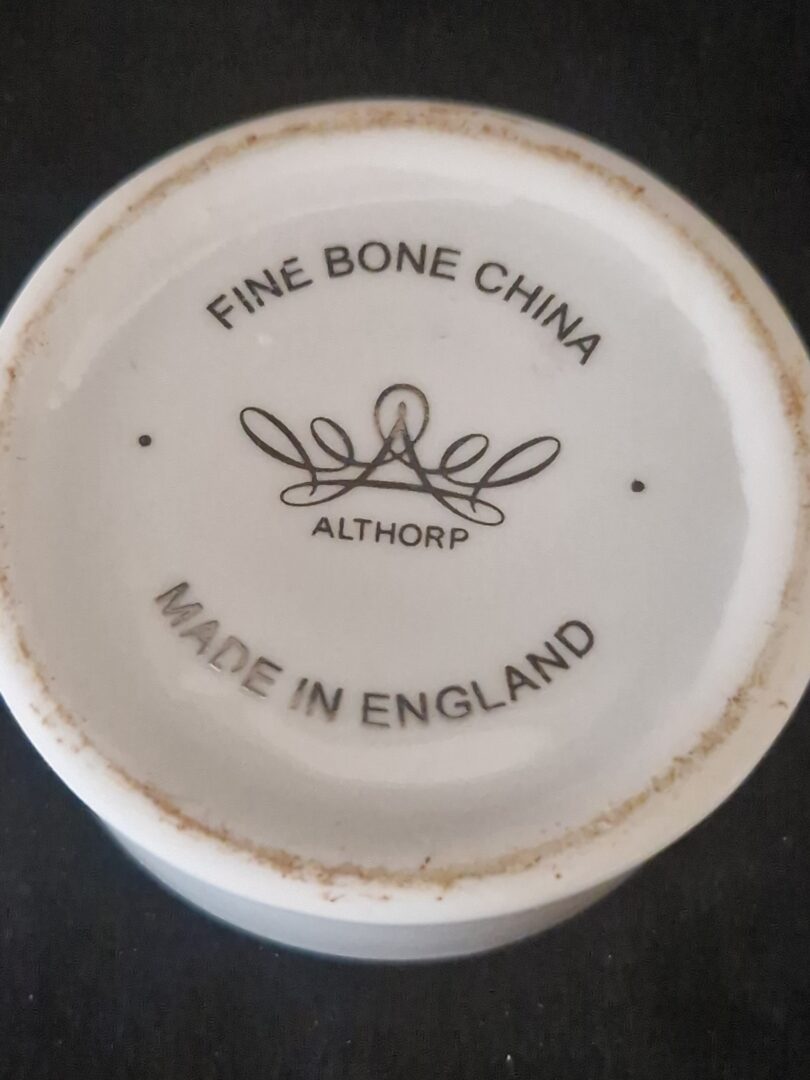 - De basis is wit met een gouden rand en het ‘Althorp’-logo.