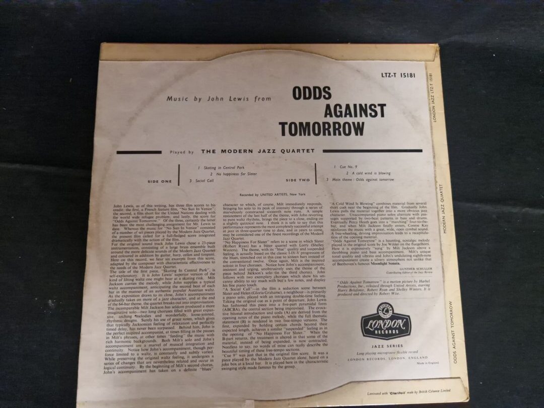 Dit is een vintage vinyl LP getiteld “Music from Odds Against Tomorrow” van The Modern Jazz Quartet.