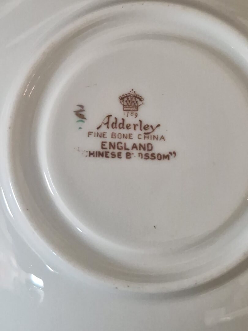 Dit is een Adderley Fine Bone China theekopje en schotel in het ‘Chinese Blossom’ patroon.