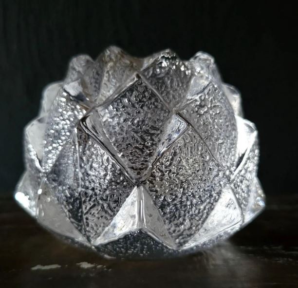 Het betoverende ontwerp heeft de vorm van een artisjok of een dennenappel en verkeert in nieuwstaat.