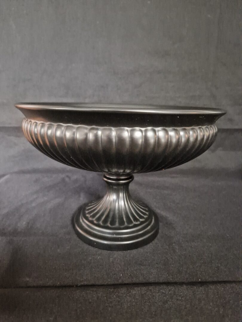 Dit is een vintage Wedgwood Ravenstone zwarte neoclassicistische geribbelde fruitschaal.
