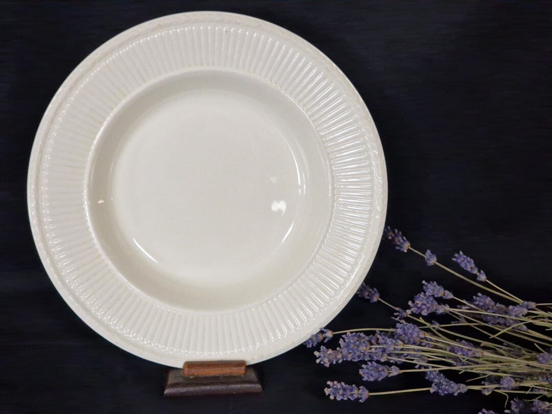 Mooi soepbord uit de klassieke Edme-collectie van Wedgwood. Het roomwitte aardewerk met de subtiele ribbelstructuur straalt tijdloze elegantie uit.