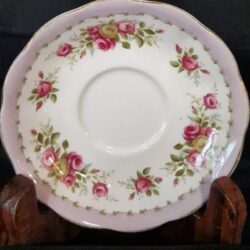 Royal Albert No Name. Doorsnee 14 cm Bordje voor herenkop met roseĀ  bloemetjes