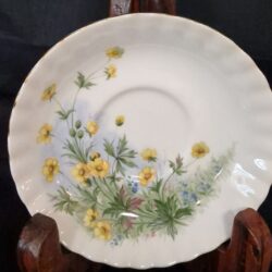 Royal Albert No Name. Doorsnee 14 cm Bordje voor herenkop met gele bloemetjes