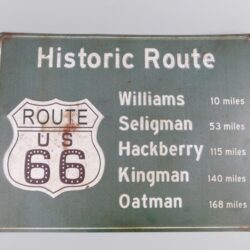 Gestanste metalen decoratie. Historic route: Williams, Seligman, Hackberry, Kingman, Oatman art. nr. 332.119 Lengte:58cm Breedte:0,2cm Hoogte:43cm Gewicht:1 kilo
