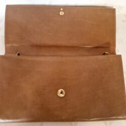 Prachtige in nieuwstaat verkerende clutch van Ted Lapidus Paris. Licht bruin. Leer van binnen en buiten breed 30 cm hoog