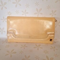 Prachtige in nieuwstaat verkerende clutch van Ted Lapidus Paris. Geel romig. Leren voering breed 30 cm hoog 18 cm