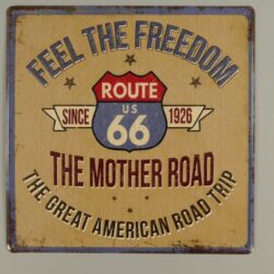 Mooi metalen gestanst bord Route 66 Artikel nummer.:Ā 321.D49 Lengte:33 cm Breedte:0,2 cm Hoogte:25 cm Gewicht:0,35 k