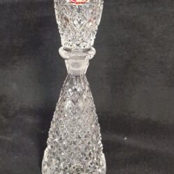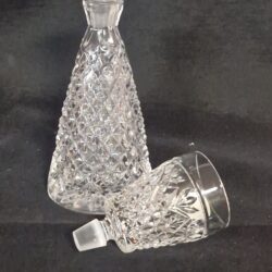 Dit object is een Bohemia loodkristallen karafje met een borrelglaasje als stop.  Materiaal: Helder geslepen kristal. Merk: Bohemia Crystal. Afmetingen: Ongeveer 19,5 tot
