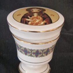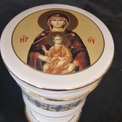 Porseleinen wierookbrander met een afbeelding van Maria en Jezus 7,5 cm hoog